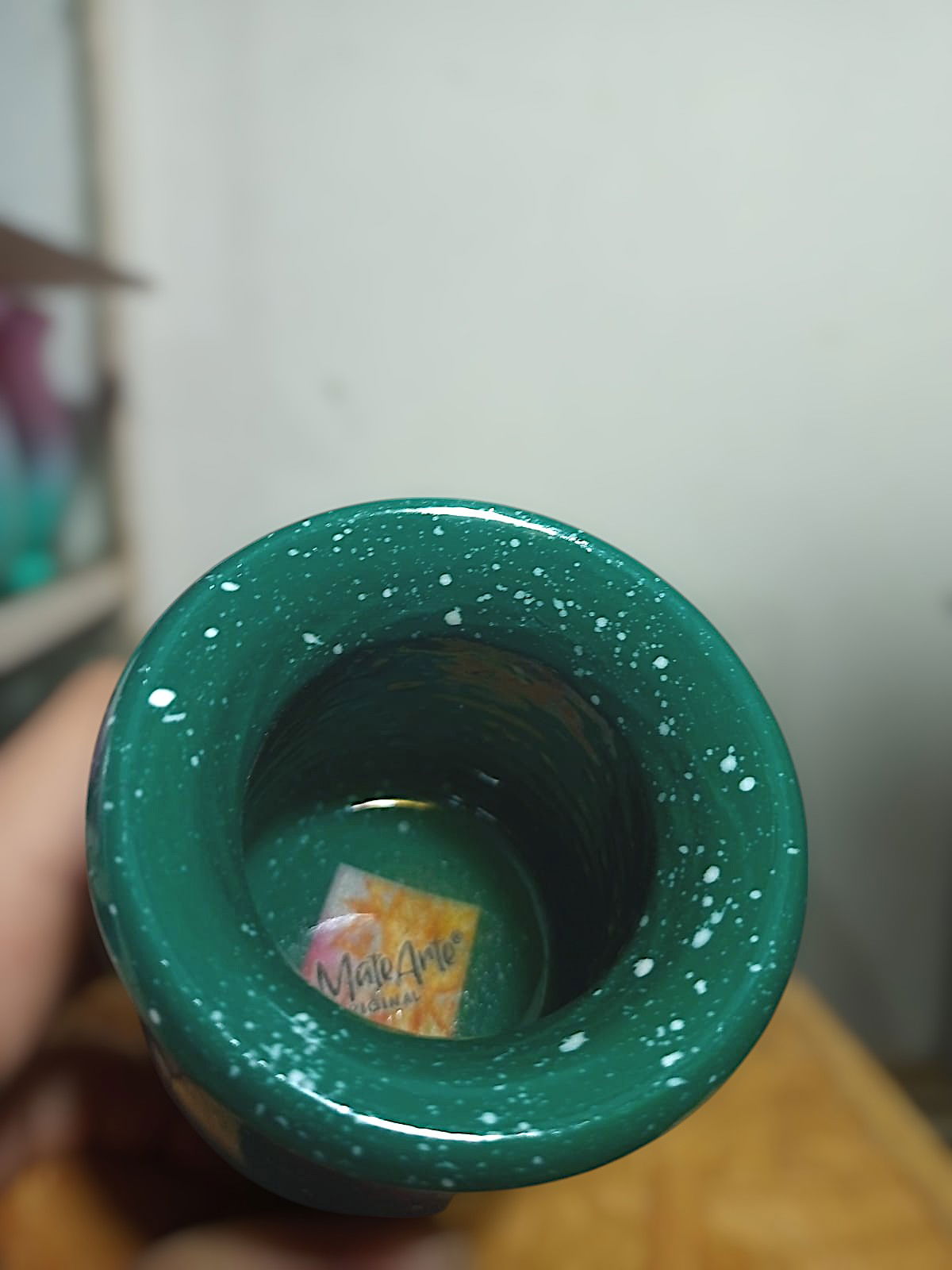 Mate de madera pintado artesanalmente, laqueado y vitrificado en su interior.