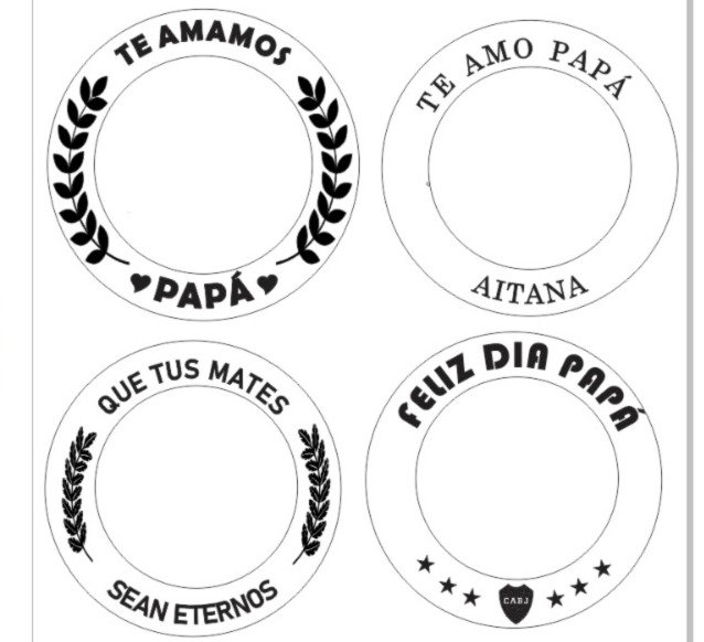 pueden ser palabras, nombres, frases, escudos, dibujos lineales (fotos no).