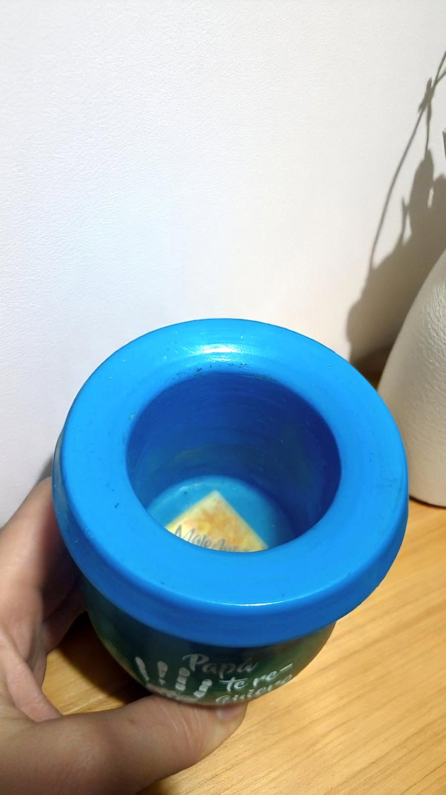 Mate de madera pintado artesanalmente, laqueado y vitrificado en su interior.