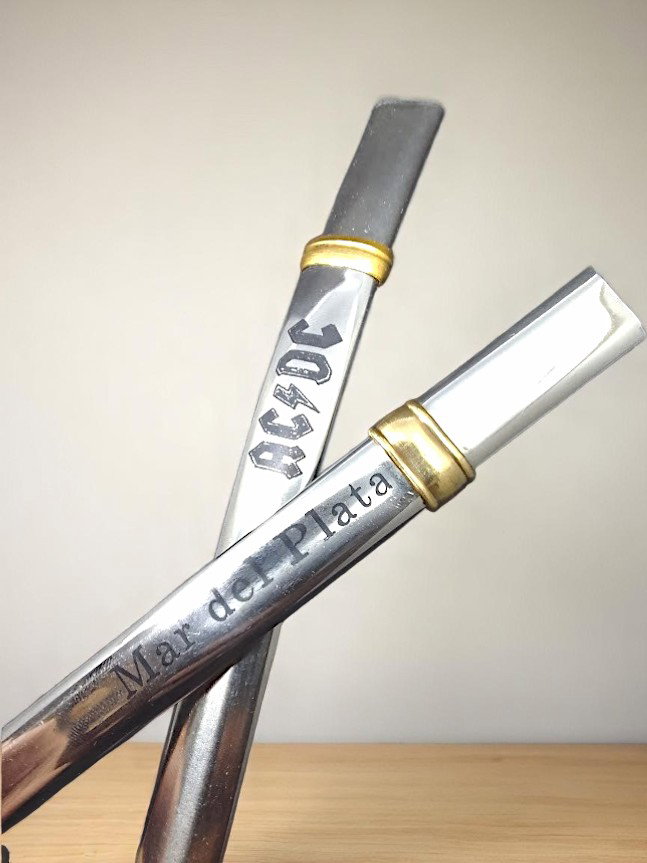 Bombilla chata de acero GRABADA