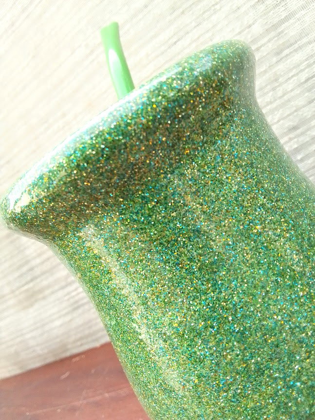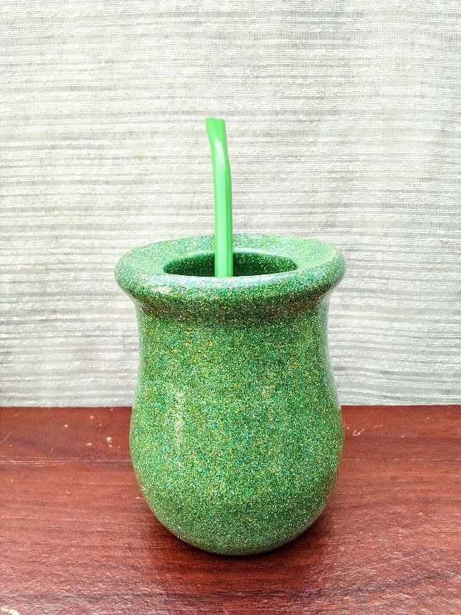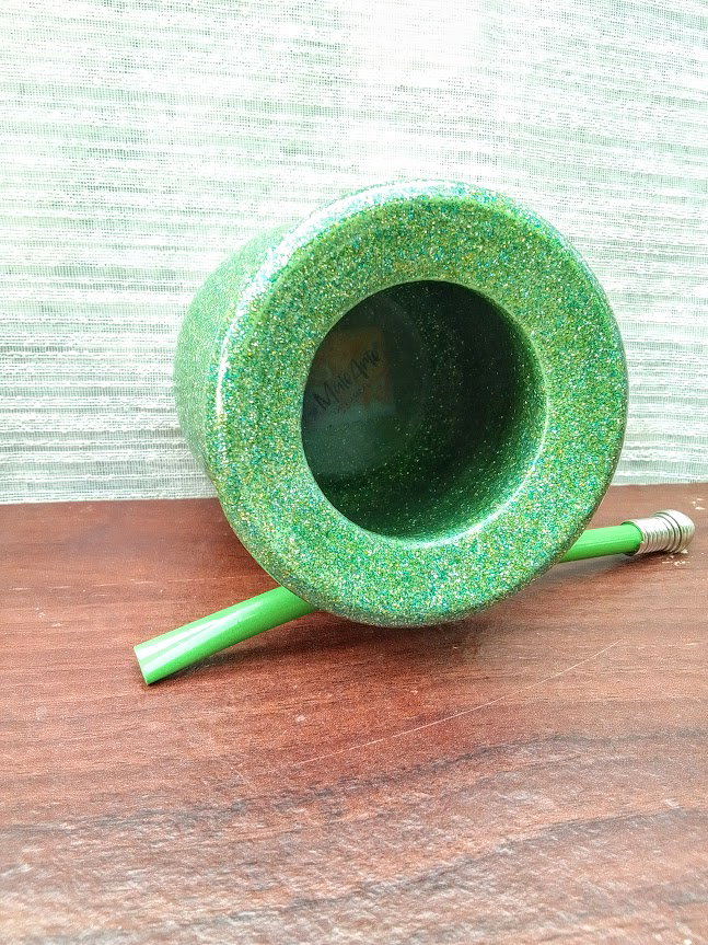 Este mate de madera artesanal está revestido en glitter, laqueado por fuera y vitrificado en su interior, lo que lo hace resistente, duradero y de fácil limpieza.