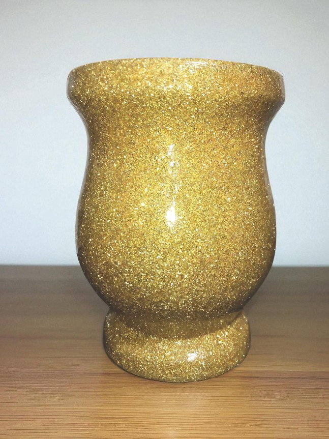 Este mate de madera artesanal está revestido en glitter, laqueado por fuera y vitrificado en su interior, lo que lo hace resistente, duradero y de fácil limpieza.