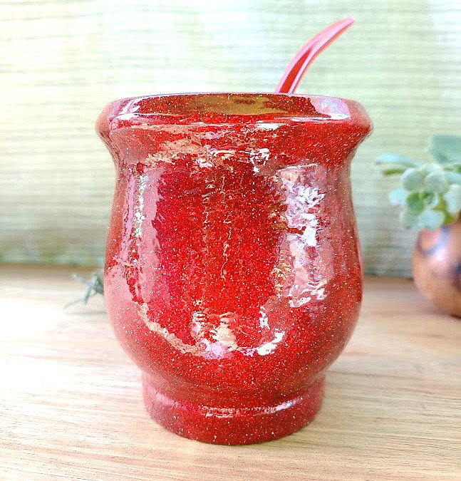 Este mate de madera artesanal está revestido en glitter, laqueado por fuera y vitrificado en su interior, lo que lo hace resistente, duradero y de fácil limpieza.