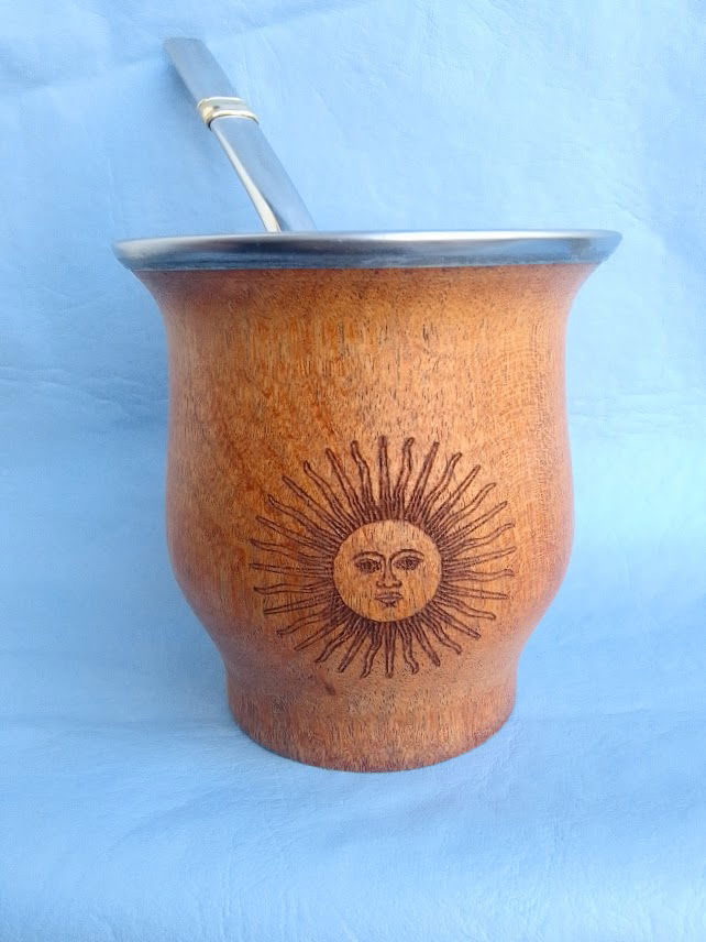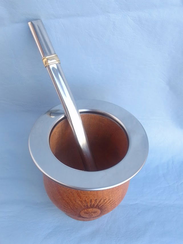 Mate camionero de algarrobo lustrado, con virola de acero.