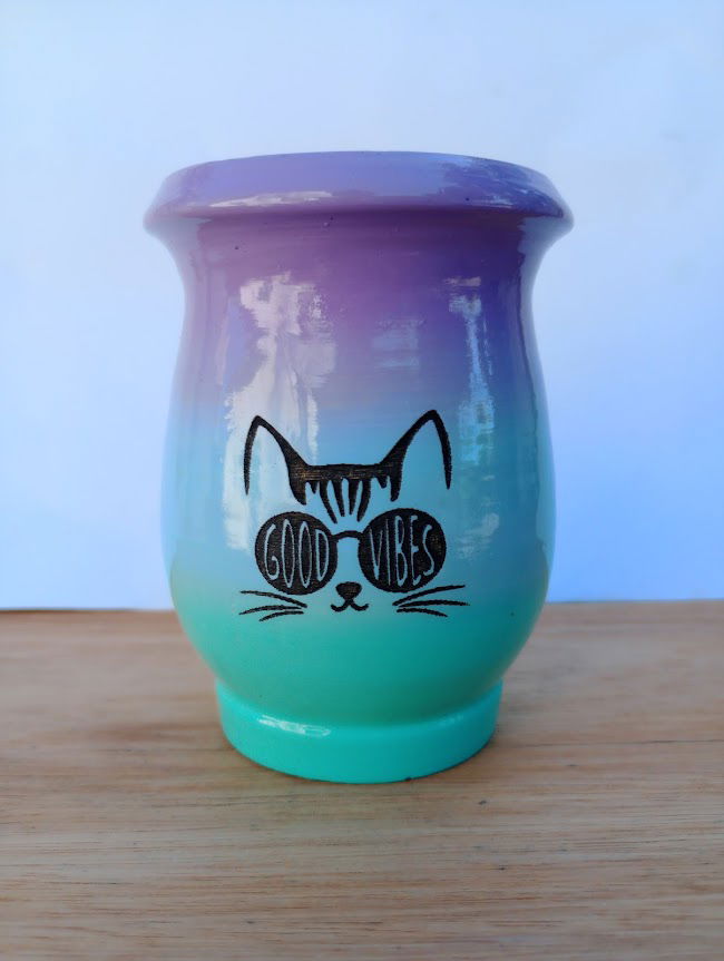 Mate mateArte vitrificado grabado gatito - lila celeste